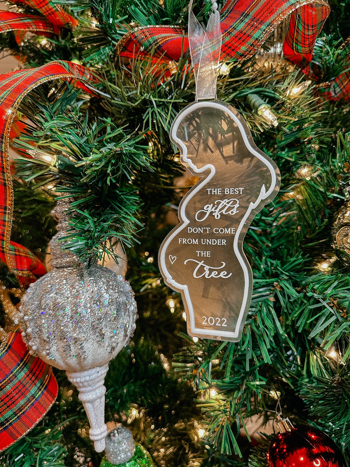 This listing is for 1 Laser Engraved 4-5 Inch inch Pregnant Silhouette Ornament. All pieces are Engraved and Laser Cut.