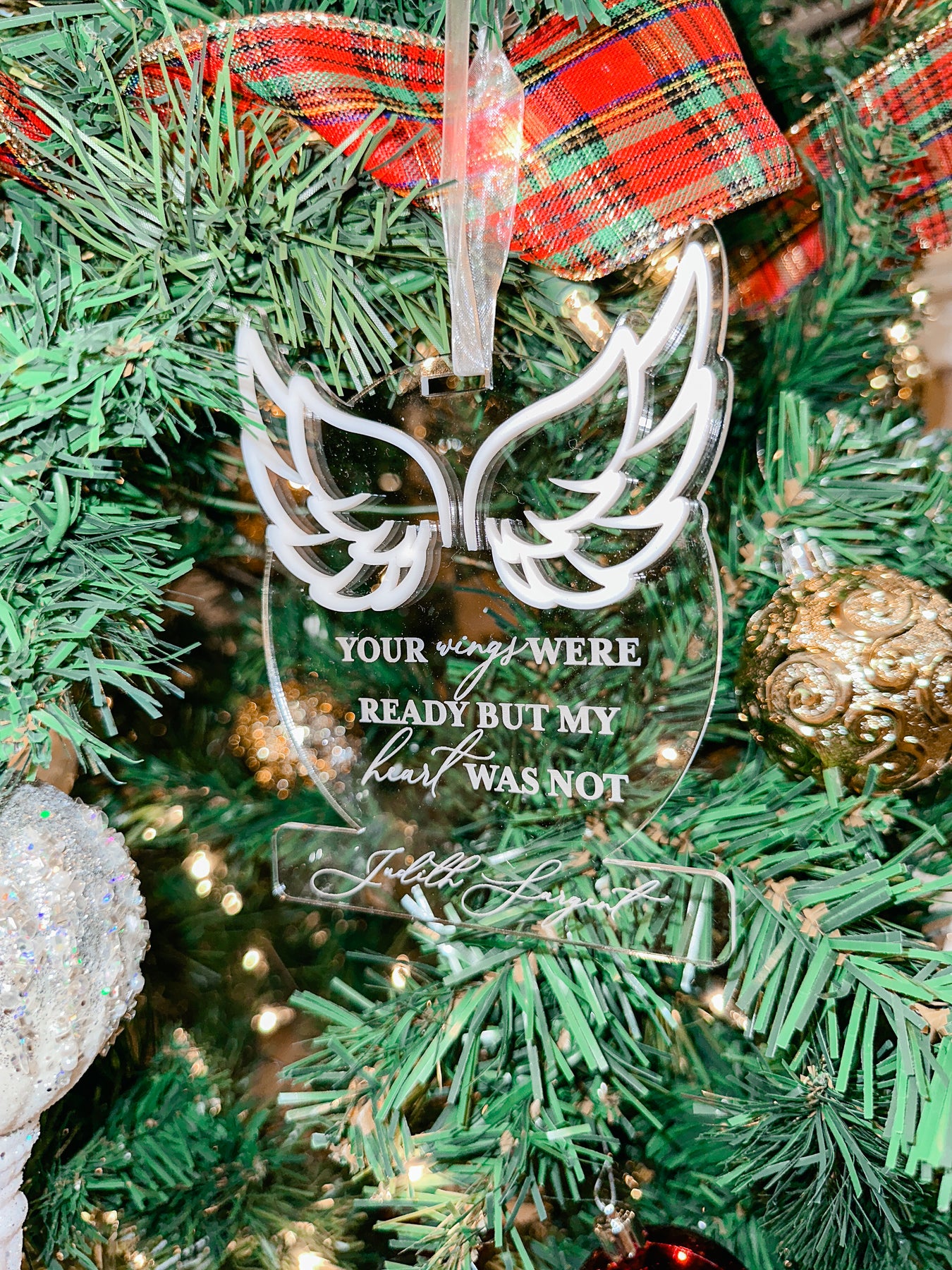 This listing is for 1 Laser Engraved 3-4 inch "Your Wings were Ready But My Heart Was Not" Ornament. All wording are Engraved.