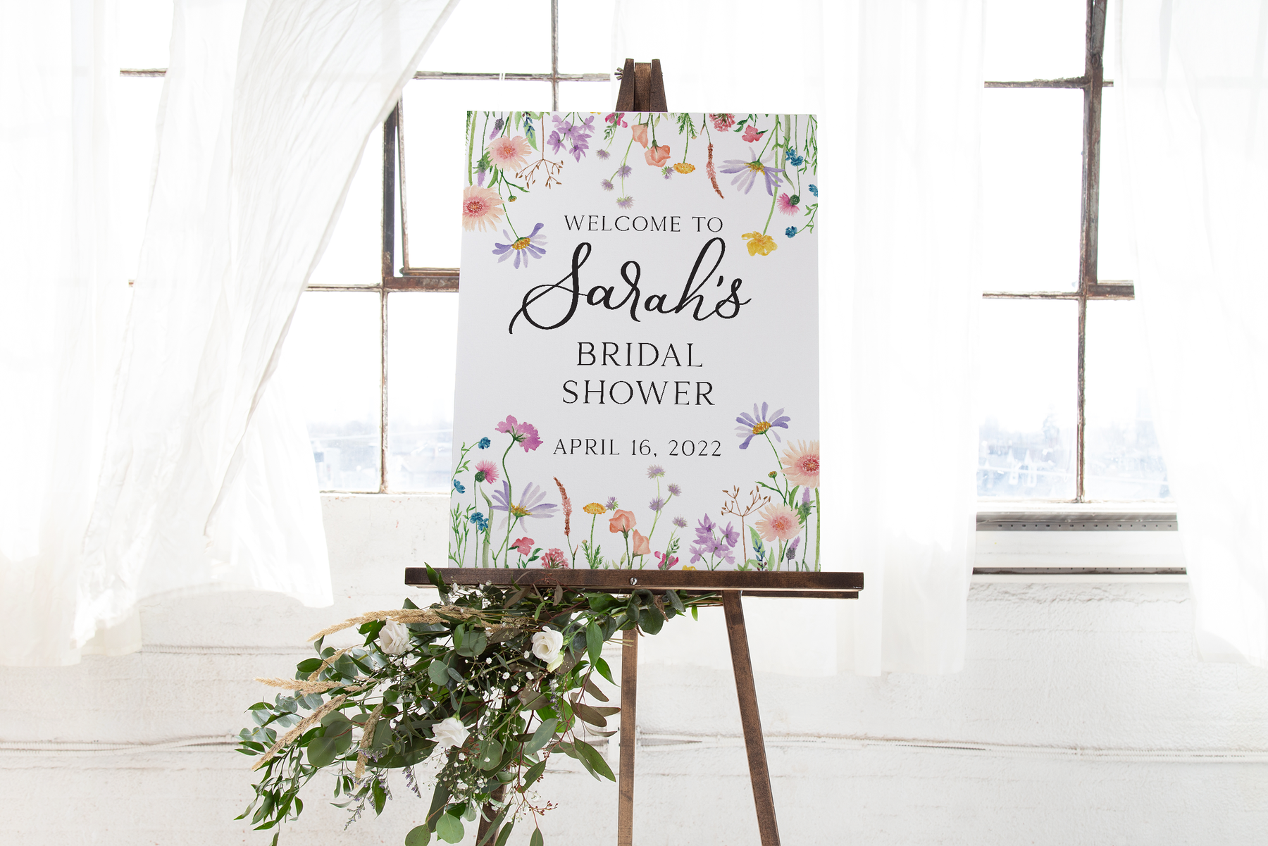 This listing is for 1 wildflower bridal shower welcome sign. All signs professionally UV printed onto a 18x24 white foam board. Your print will come with a mounting kit which will allow you to secure it to an easel, wall etc!
